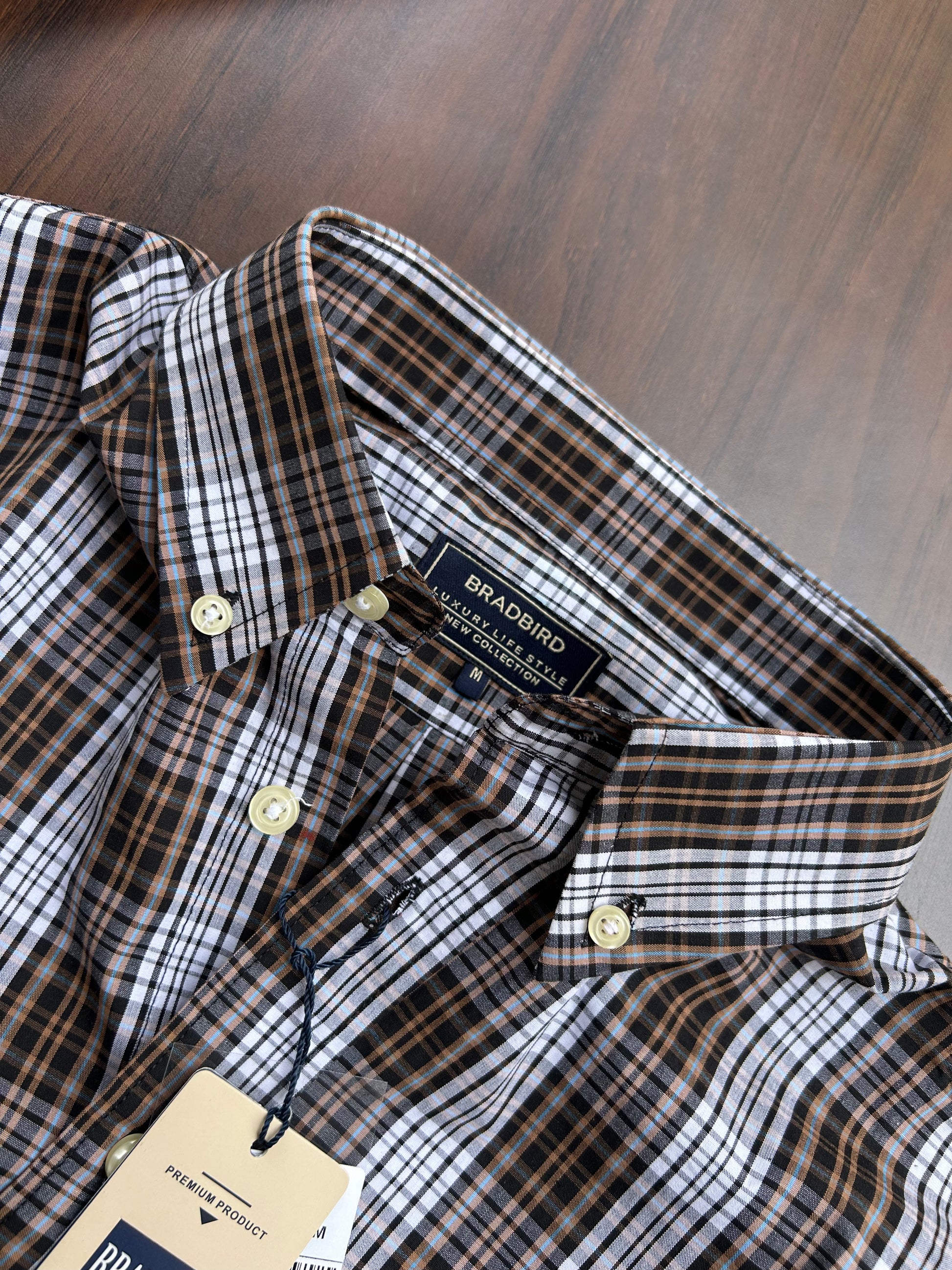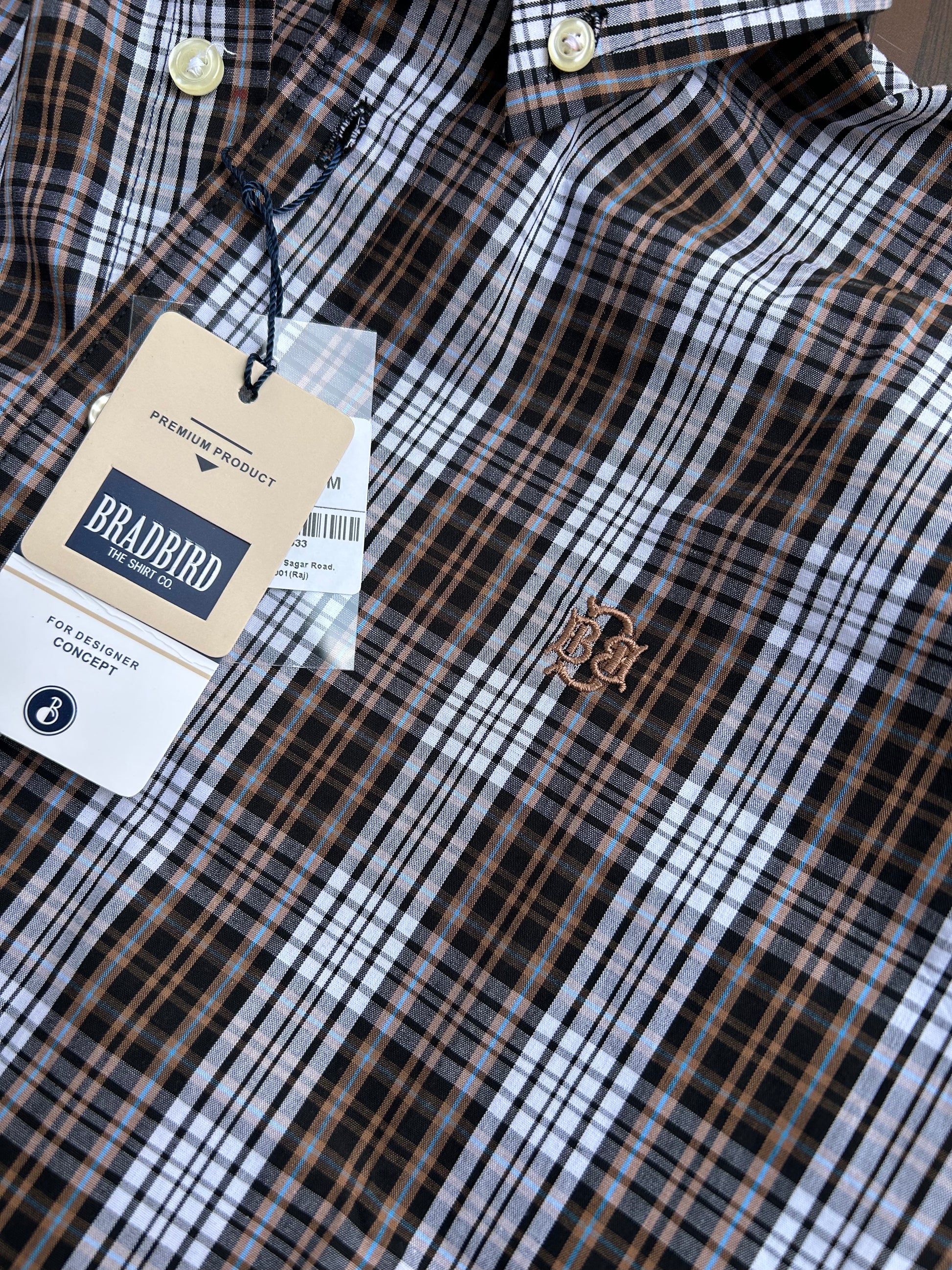 Bring timeless elegance to your wardrobe with the Bradbird Mocha White Checks Shirt. Featuring a refined mix of dark mocha brown, black, and crisp white checks, this shirt balances tradition with modern flair. Crafted from high-grade RFD cotton, it offers superior comfort, durability, and a flattering fit. The button-down collar, subtle logo embroidery, and neat cuffs make it ideal for casual business days or relaxed weekends. Pair it with beige trousers or denim for a clean, confident look.