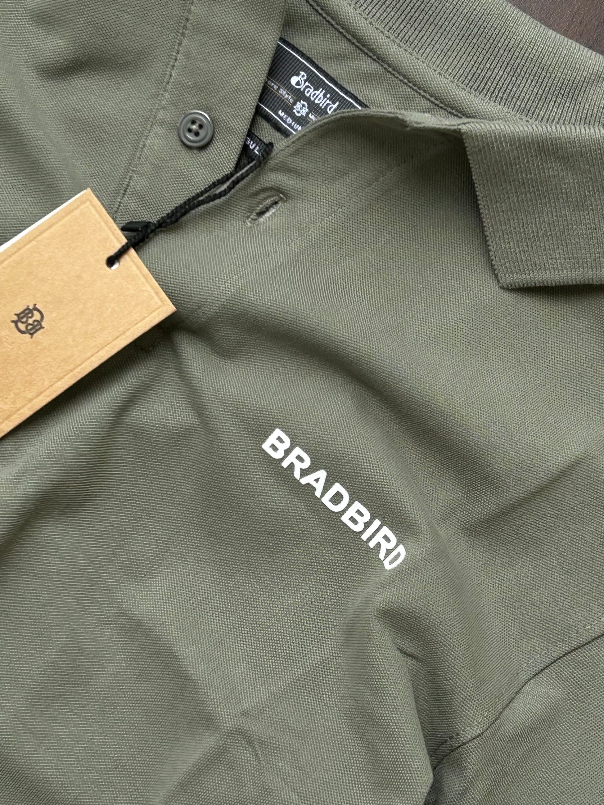 Inspired by earthy tones and crafted with precision, this elaichi-colored collar t-shirt is all about quiet confidence. With soft matty fabric and Bradbird sleeve detailing, it adds a fresh twist to minimal fashion.