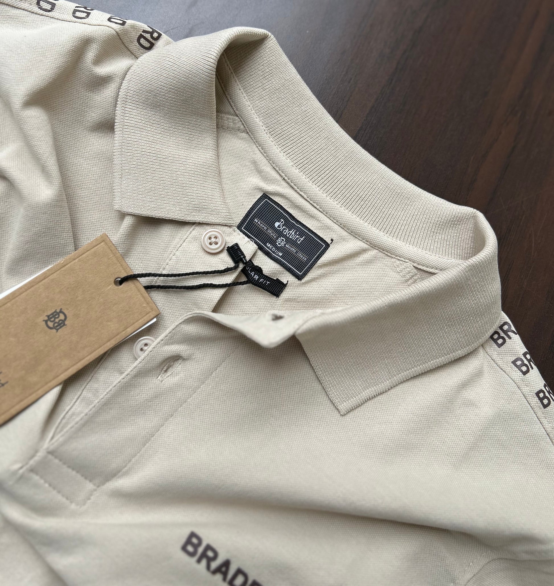 Crafted from premium matty fabric, this cream-colored collar t-shirt blends comfort with clean, urban style. Featuring a structured fit and signature Bradbird branding boldly placed on the sleeves, it’s made for those who like to keep it subtle yet stand out.